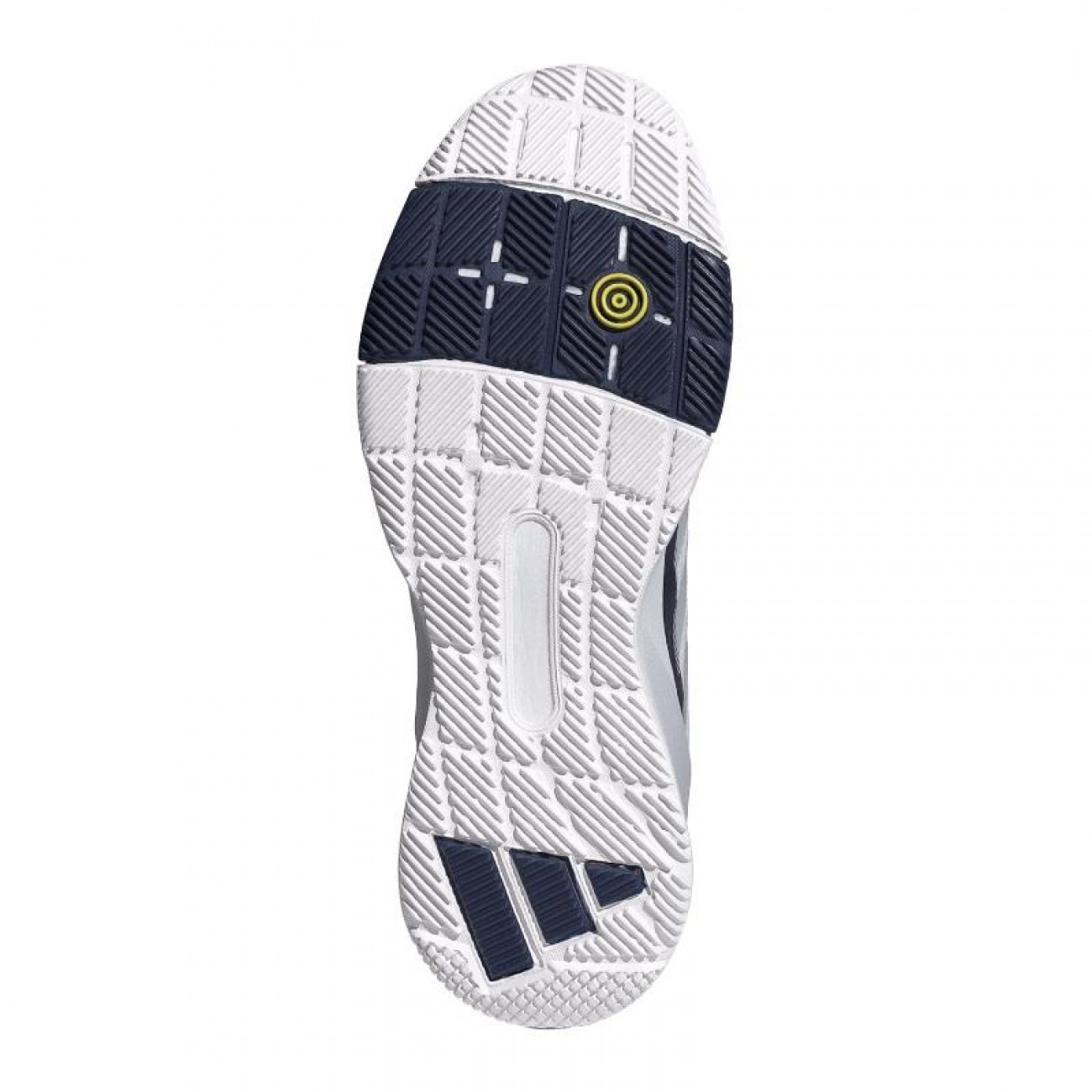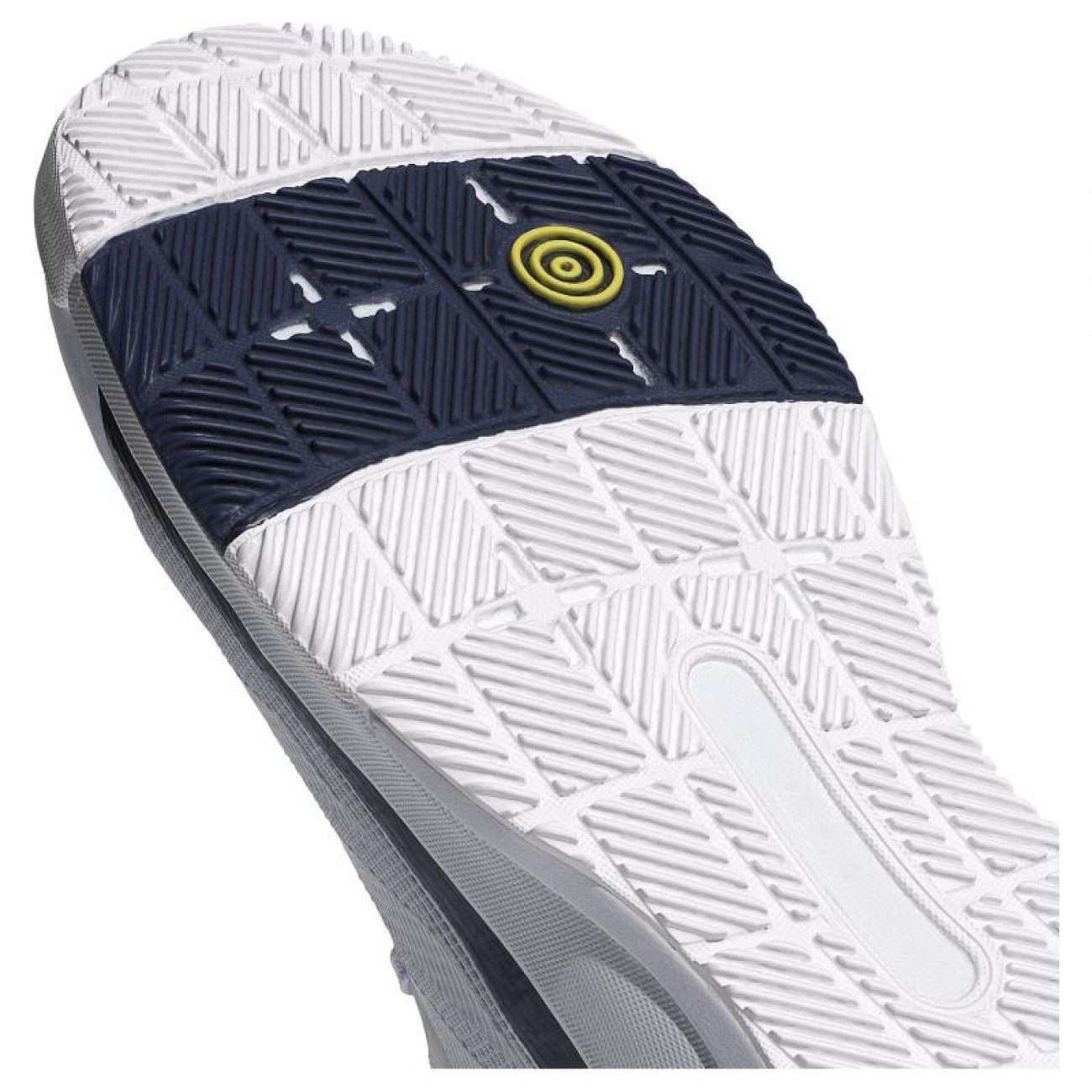 Suela específica de pádel con tracción optimizada para cambios rápidos, frenadas y salidas explosivas.